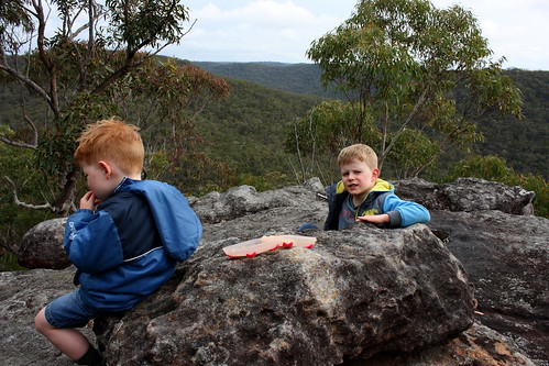 We had a packed lunch at the lookout, the view was great, it looks north towards the Hawkesbury over an ancient maar volcano. It would have been a relaxing if it wasn’t for the kids antagonizing each other, running toward the cliff edge and destroying and hacking at the bush in front of the Nation Parks staff.