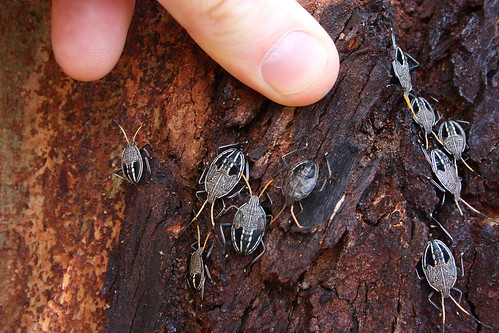 A cluster of nymph Gum Tree Shield bugs. The nymphs are said to spend most of their time under the bark, I’m not sure how common it is to see them out like this.