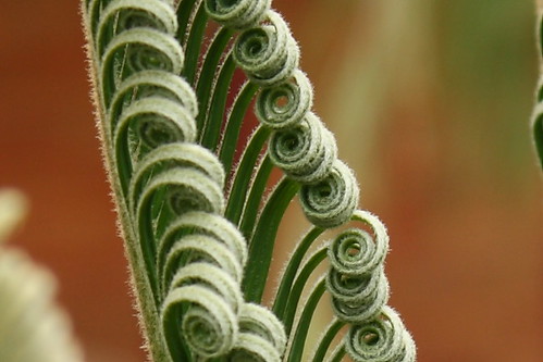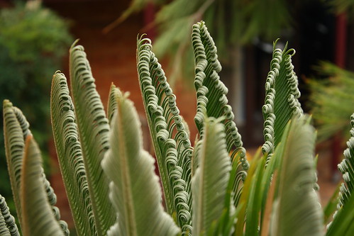 New cycad leaves unrolling. The new leaves are soft and flexible.